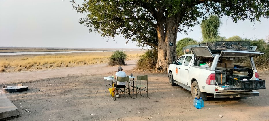| Am Abend erreichen wir das Camp Ihaha im Chobe NP. | Wir bleiben zwei Nächte. |