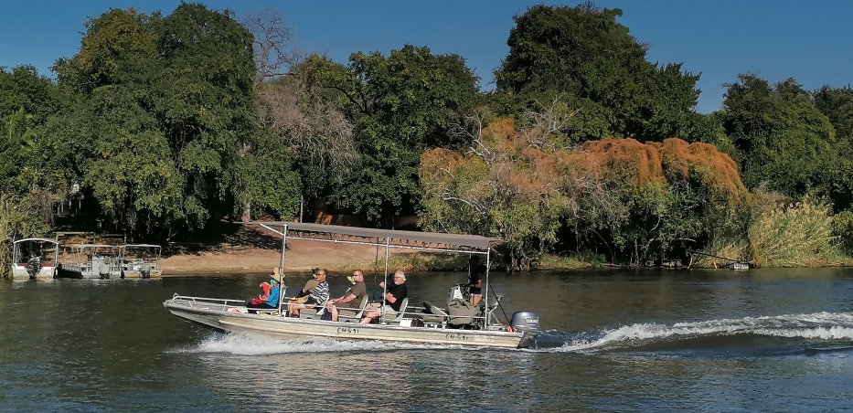 | Wir sitzen genau an dem Zusammenfluss des Chobe River mit dem Sambesi. | |