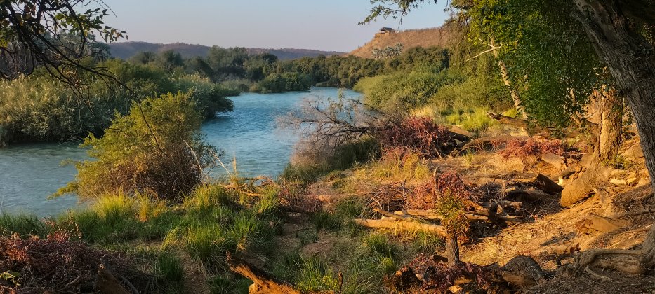 Namibia wird es im September schon recht heiß. Auf der anderen Seite des Flusses ist Angola. |