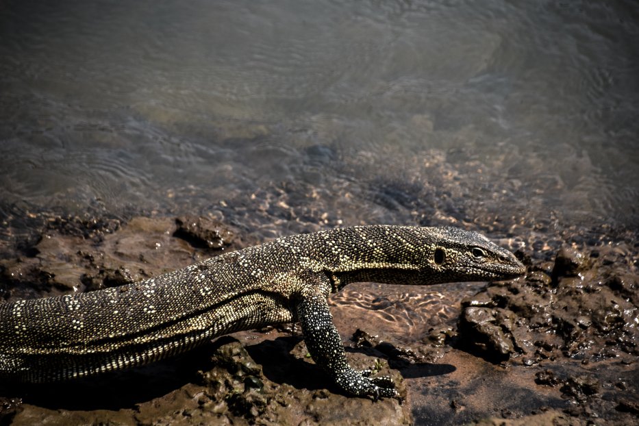 | Am Abend sitzen wir am Kunene River und schauen den Krokodilen zu. |
