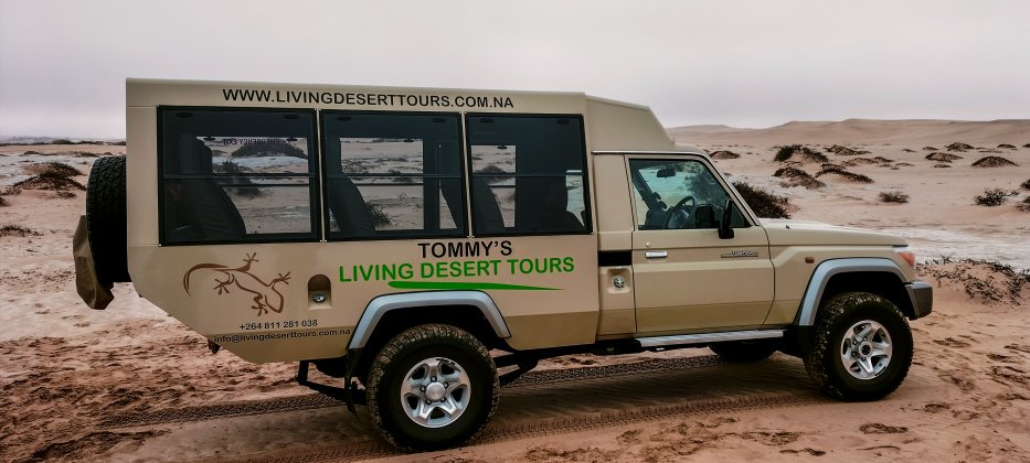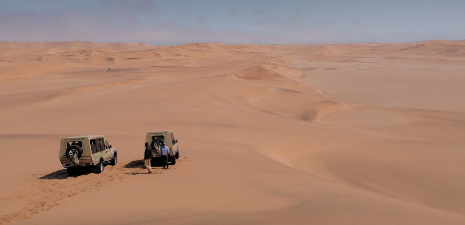 | In der Mittagszeit durchfahren wir dann mit den Landcruisern die Dünen zwischen Swakopmund und Walvis Bay. | |