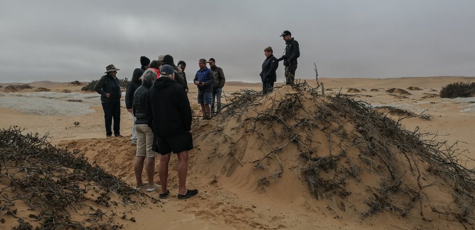 | Wir haben auch Zeit eine Tour mit "Tommy's Living Desert " mitzumachen. Tom zeigt uns die Kleintierwelt der Dünen. | |