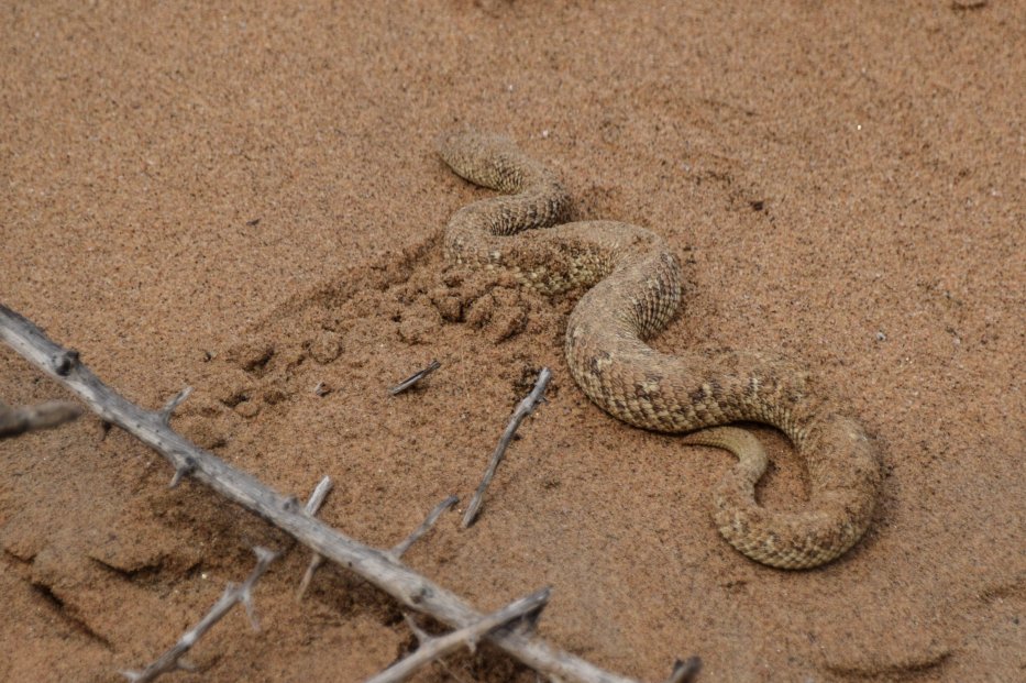 | Geckos, Käfer und auch giftige Schlangen findet er in den Sandhügeln. |