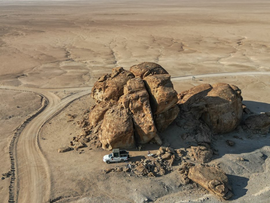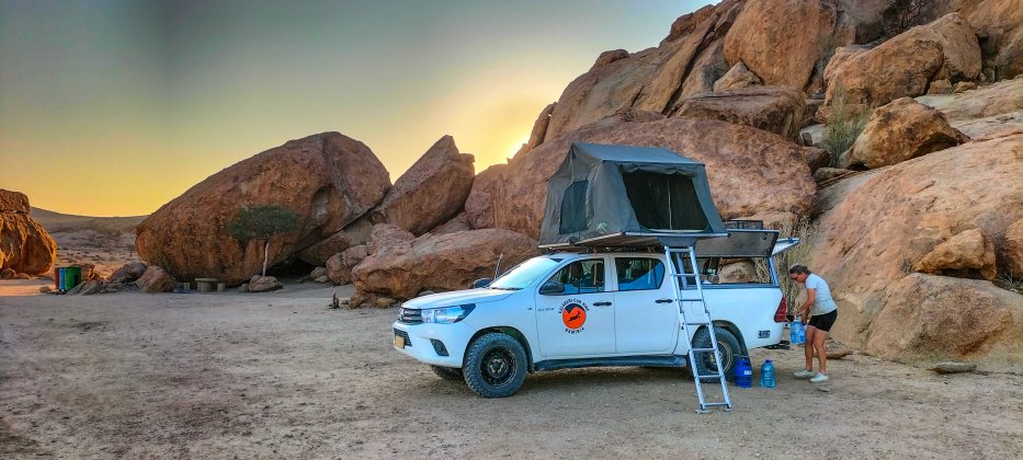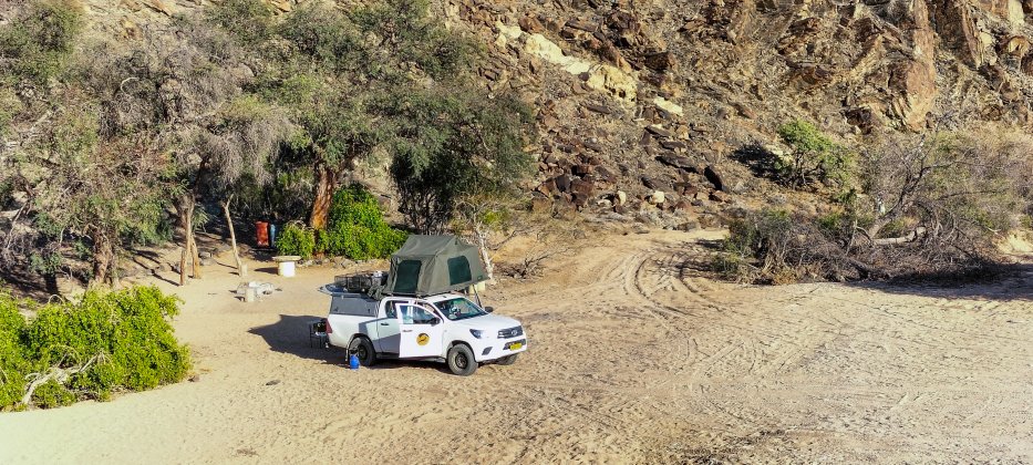 | Eines der schönsten Campsites im Park ist Mirabib. Ich packe die DJI-Drohne aus und umfliege die Felsen. |