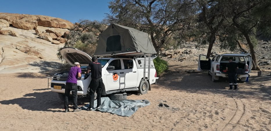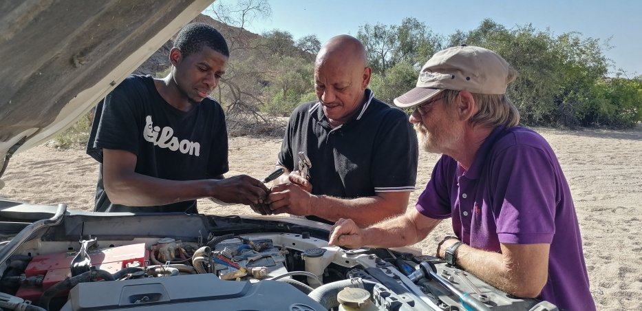 Sie schicken uns darauf hin aus Windhoek zwei Mechaniker die uns einen neuen