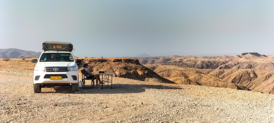 | Am "Henno Martin Shelter" übernachten wir. Der Kuiseb Canyon liegt vor uns. |