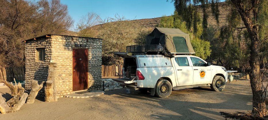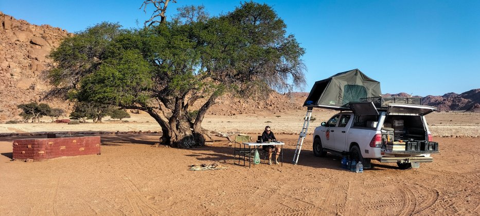 | Wir übernachten im Gruppen-Camp 10 km entfernt ganz alleine und abseits in den Bergen. |