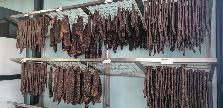 | Für unsere Freunde zu Hause wird noch Biltong (Dörrfleisch) eingekauft. | |