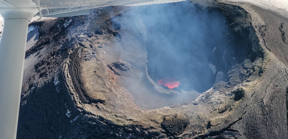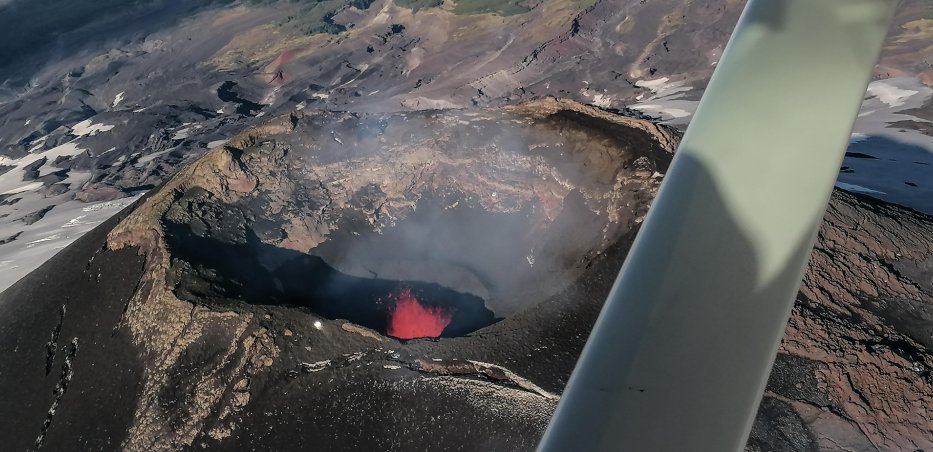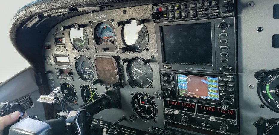 | Mit viel Glück lösen sich die Wolken über dem Vulkan Villarrica auf, und wir können noch am frühen Morgen einen Überflug des Vulkanes mit der Cessna machen. Die Instrumente der Cessna kommen uns sehr bekannt vor. |