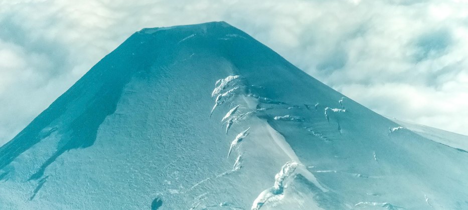 | Vulkan Villarrica | Der Eisschild glänzt in der Morgensonne. |
