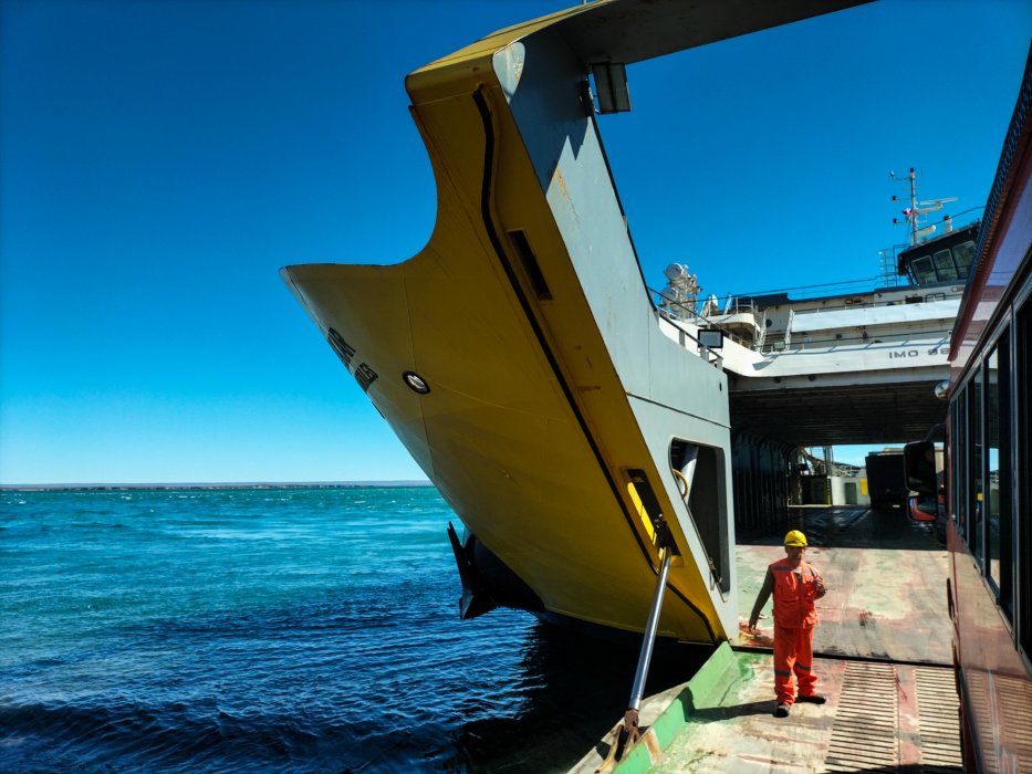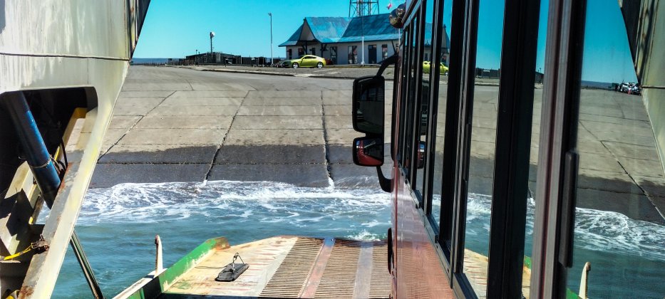 | Wir überqueren wieder die Magellanstraße und verlassen die argentinische Insel Feuerland. |