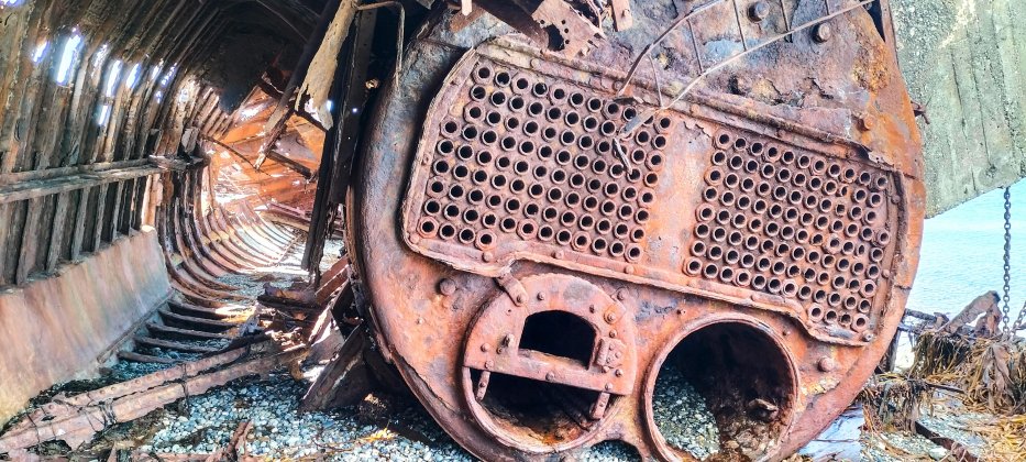 | Die Wracks sind tolle Fotomotive, hier der Dampfkessel eines Schoners. | |