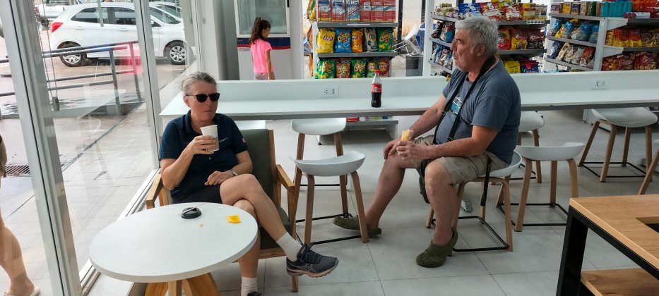 einen Kaffee gönnen wir uns hier mit unserem Fahrer Edip vom Rotel Bus. Er