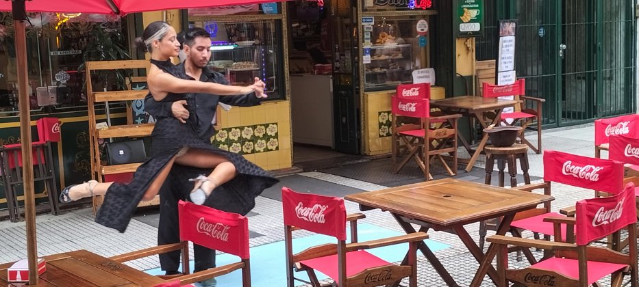 | Um sich einen Lebensunterhalt zu verdienen, sind an den großen Kreuzungen bei roter Ampel Akrobaten am Werk. Oder wie hier wird auf der Straße Tango getanzt um sich ein kleines Trinkgeld zu verdienen. | |