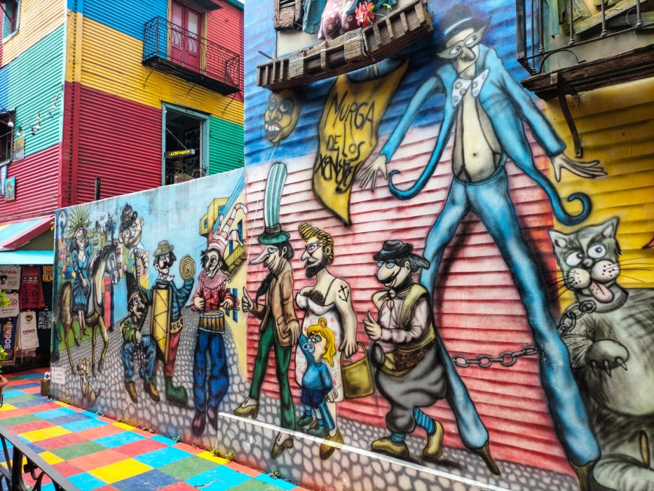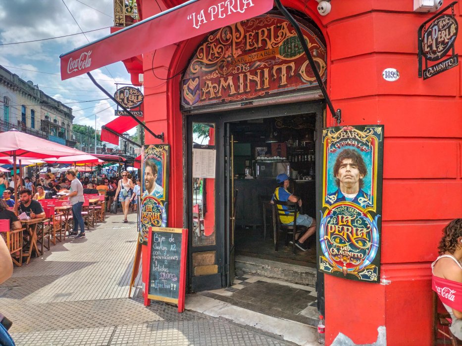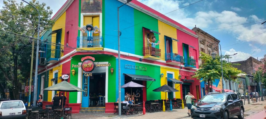 | Im La Boca, dem wohl berühmteste Stadtteil in Buenos Aires, empfängt uns buntes Treiben. Hier dreht sich alles um Fußball. Die Idole Lionel Messi und Diego Maradona werden verehrt. |