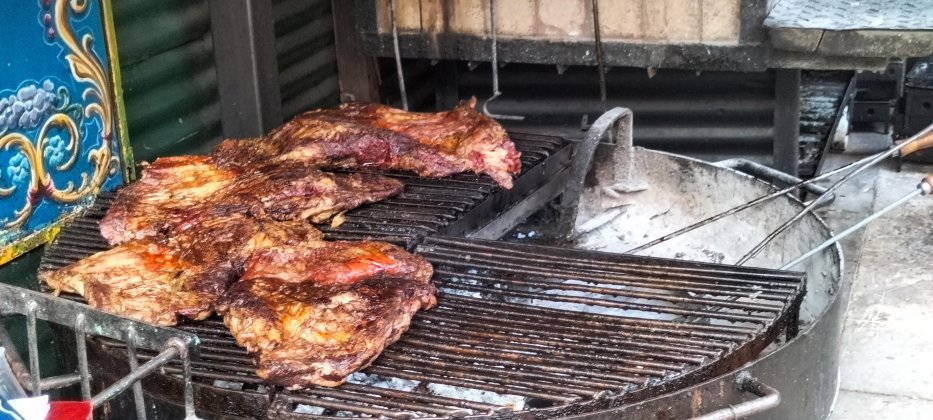 | Riesige, saftige Steaks können wir hier kaufen. |