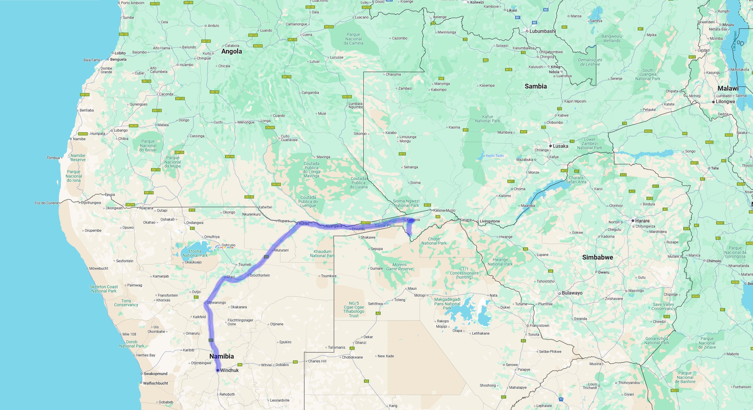 eigentlich nur die Anreise nach Botswana, da wir Namibia schon oft bereist haben. Von Windhoek aus geht es durch den Caprivi Streifen zur Kwando River Lodge. |