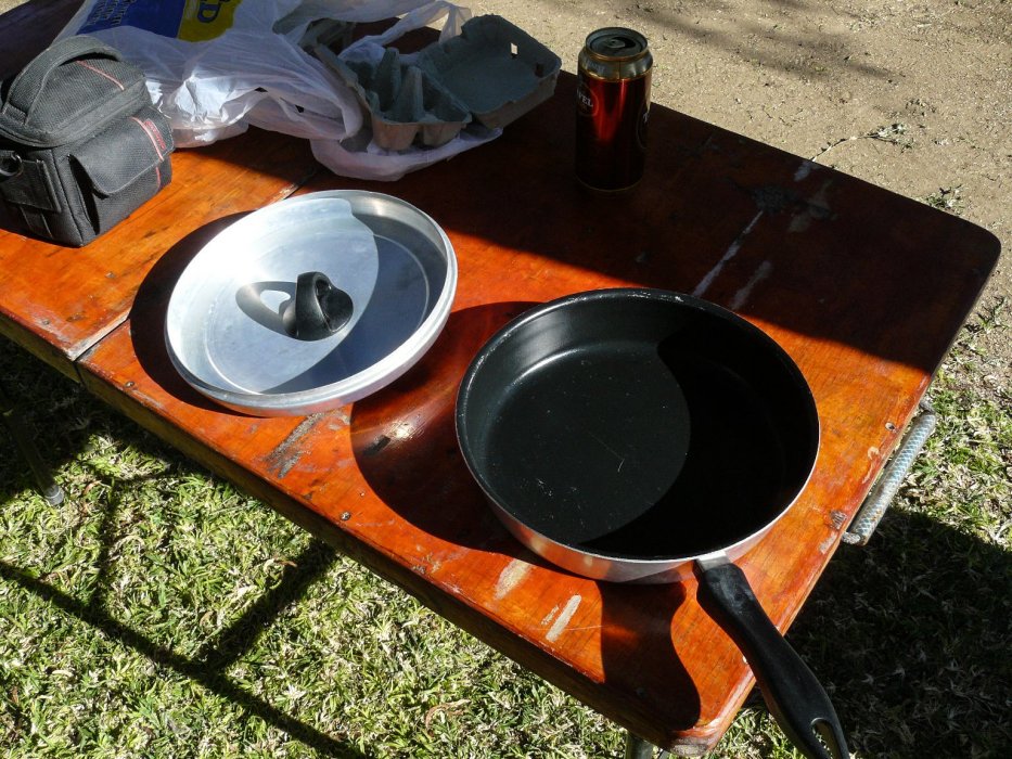| Auch die mitgebrachte Teflon-Pfanne aus Erlangen leistet immer gute Dienste. |