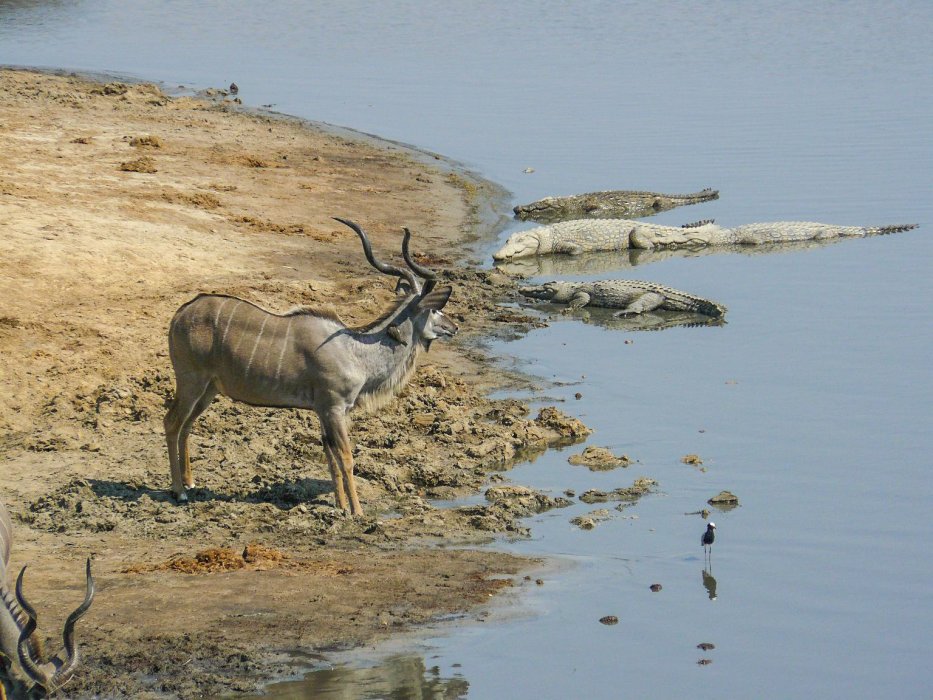 | Hier treffen sich Elefanten, Elin-Antilopen aber auch Krokodile. | |
