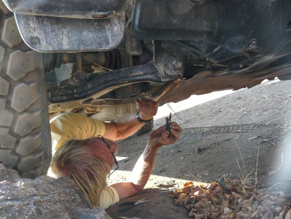 Camper. Ein Ast hatte sich in den Unterfahr-Schutz gebohrt und das Blech verbogen. |