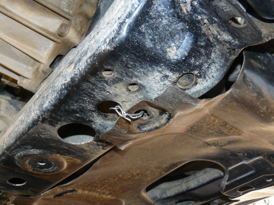 | Unter der Natur-Hebebühne kann ich mit einem Draht das Blech fixieren. | |